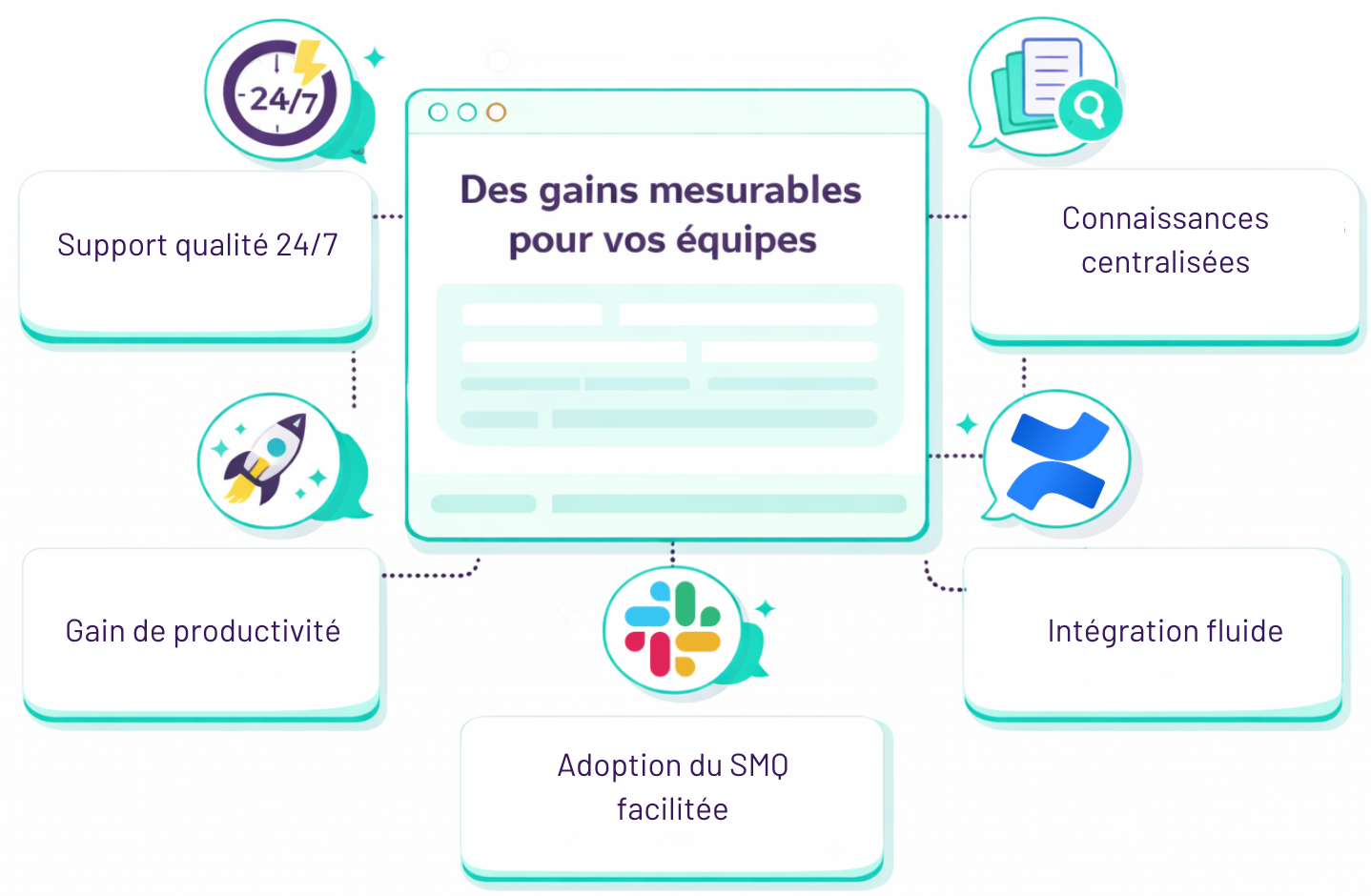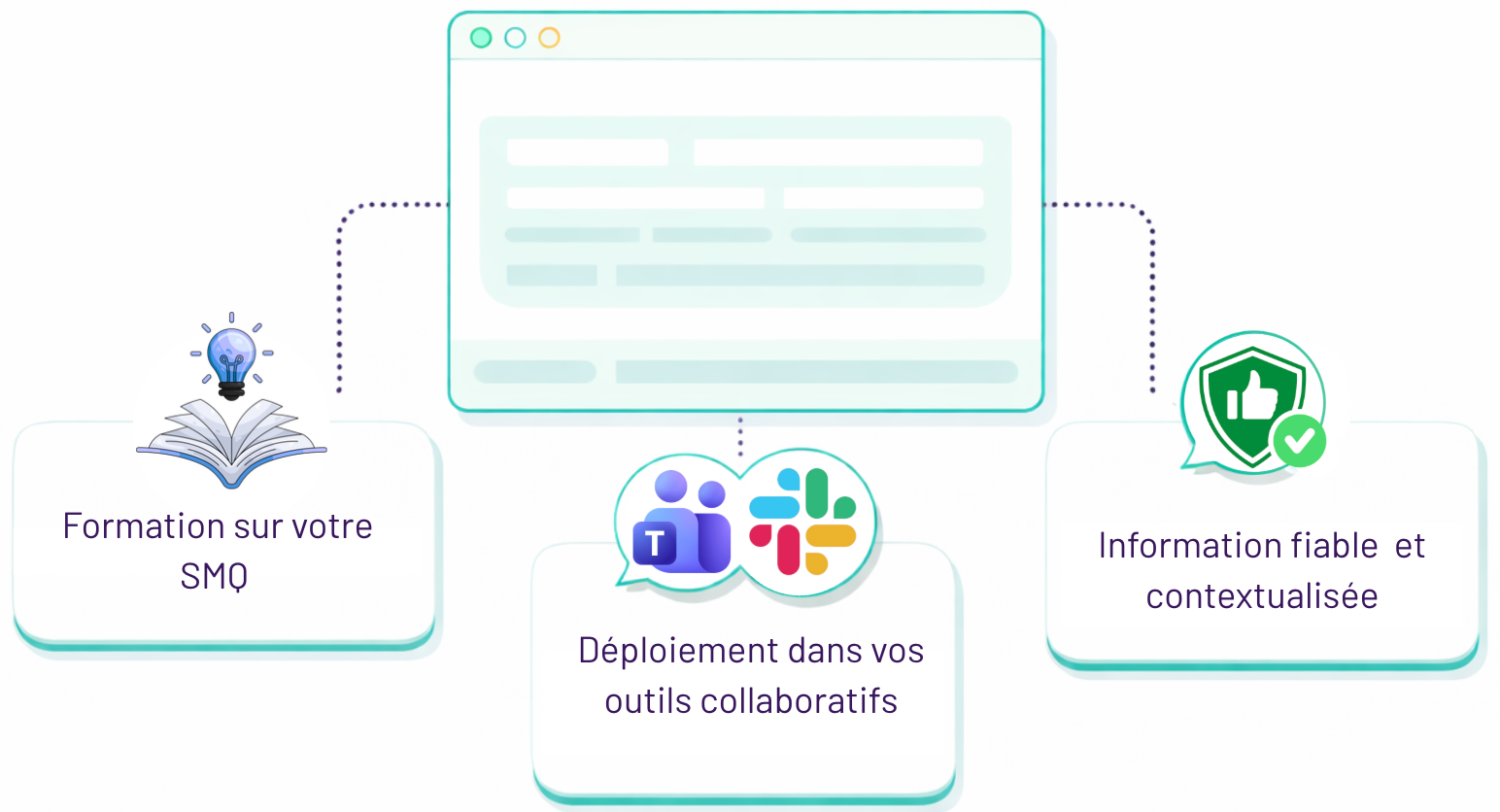 Déployé directement dans vos outils collaboratifs comme Microsoft Teams ou Slack, le Chatbot SMQ s’intègre naturellement dans les habitudes de travail. Aucune nouvelle plateforme à apprendre : l’assistant qualité devient un réflexe quotidien, parfaitement aligné avec votre environnement digital.